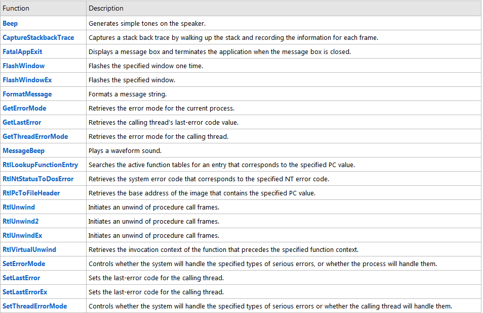 3)附:以下函数都可用于错误处理的: