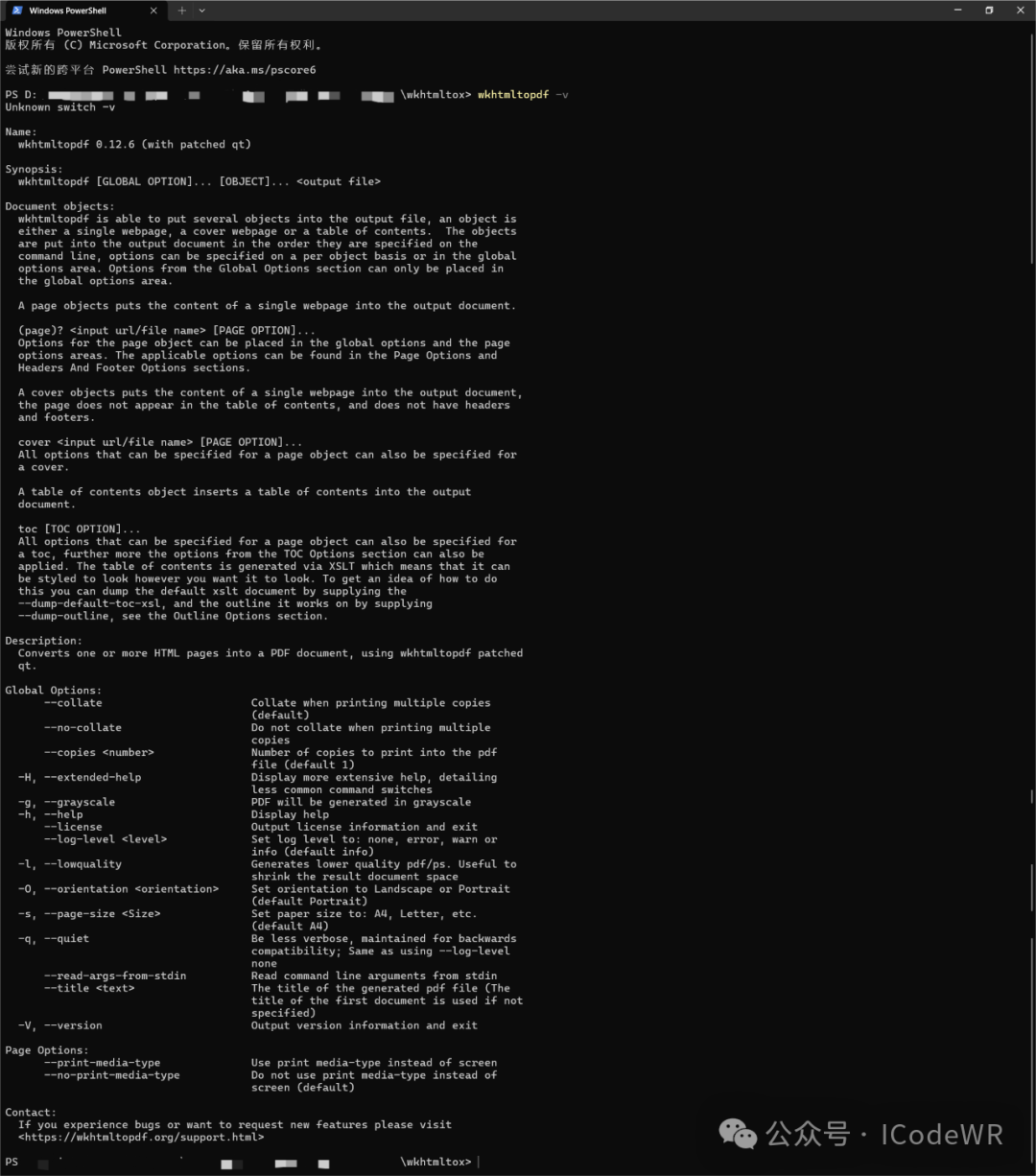 wkhtmltopdf [选项] <输入文件/URL> <输出PDF文件>