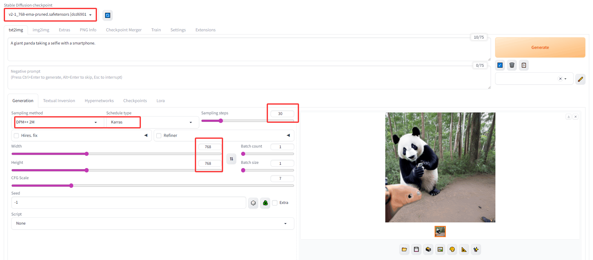 下载 文件v2-1_768-ema-pruned.safetensors 有点大5G。放到文件夹\stable-diffusion-webui\models\Stable-diffusion 中。 然后重启服务,刷新模板,重新生成。图片生成了,但是图像不对。