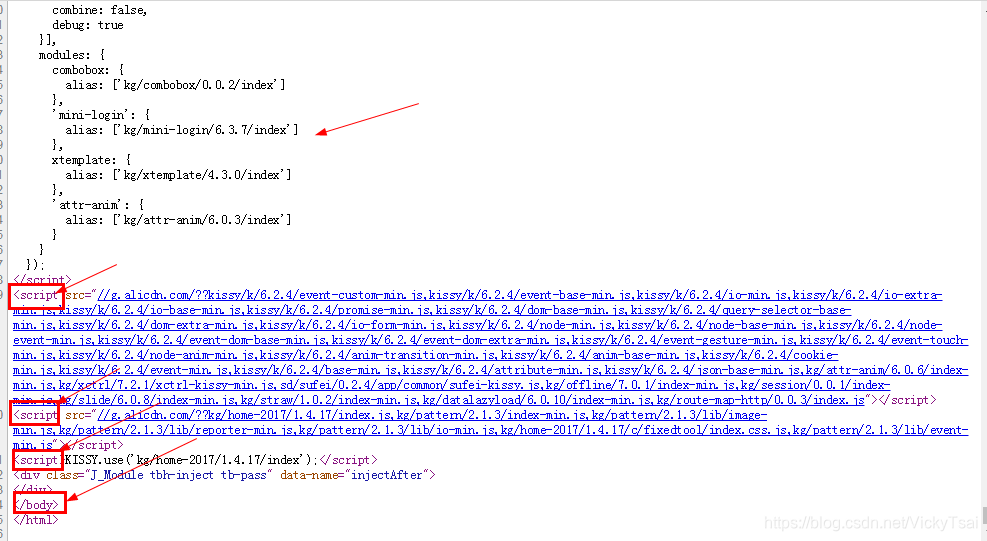 - 示例1: 下图, 是在 淘宝网的代码中 截的图,可以看到 把很多