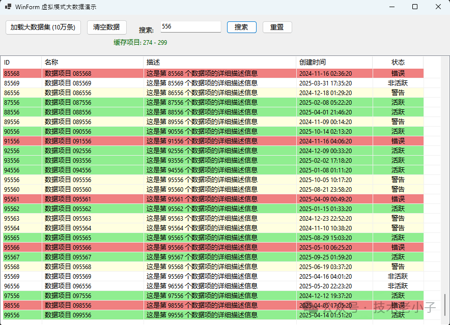 statusLabel.Text = $"✅ 成功加载 {virtualData.Count:N0} 条记录,耗时: {stopwatch.ElapsedMilliseconds} 毫秒";