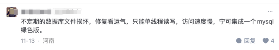 只要是需要 轻量、嵌入式、免安装 的数据库场景,SQLite 基本就是默认选择。 有人统计过:90% 以上的手机应用都在使用 SQLite。 所以,从“使用量”这件事上看,它绝对是“国民级数据库”。 二、那为什么这么多人质疑 SQLite?虽然 SQLite 用得多,但它也经常遭到质疑。网上常见的声音有: