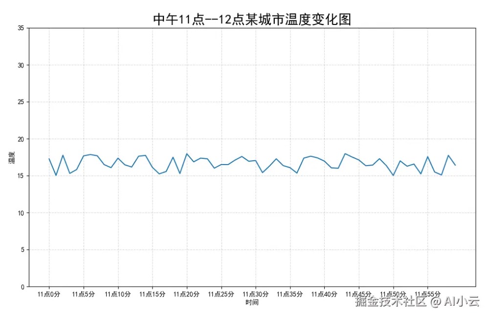 【数据操作与可视化】Matplotlib绘图-常用操作1、自定义刻度和风格 2、在同一个坐标系中多次绘制需求:再添加一个城市的温度变化。 收集到北京当天温度变化情况,温度在1度到3度。 怎么去添加另一个在同一坐标系当中的不同图形,其实很简单只需要再次plot即可,但是需要区分线条,如下显示: # 增加北京的温度数据 y_beijing = [random.uniform(5, 8) for i in x] # 绘制折线图 plt.plot(x, y_shanghai) # 使用多次plot可以画多个折线 plt.plot(x, y_beijing, color='r', linestyle='--')