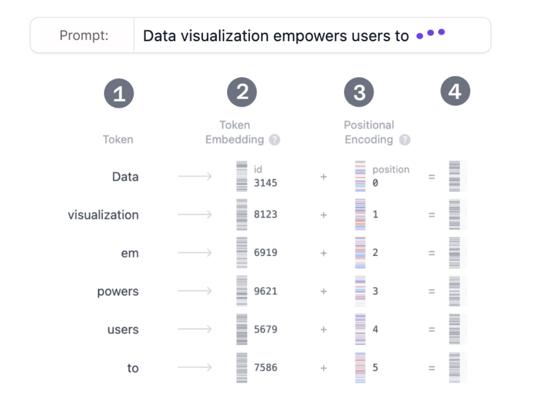 如图可以看到一个完整的提问被分成6个词,拿到分词结果后会根据已经训练好的词表,找到词的对应向量信息,这个过程类似于查字典,找到每个词的含义,最后再加上词的位置信息,结合词的位置信息可以让模型更好的解释词在句子中含义。 词向量是表示自然语言里单词的一种方法,会把每个词都表示为高维空间的向量。通过这种方法,实现把自然语言计算转换为向量计算。同时每个词对应什么向量也是通过模型训练得到的。有一个经典的通过向量对自然语言计算的案例,queen = king - man + women。如下图: 模型运行的第二步:Encoding拿到词向量加上位置编码信息后,下一步就是Encoding的过程。
