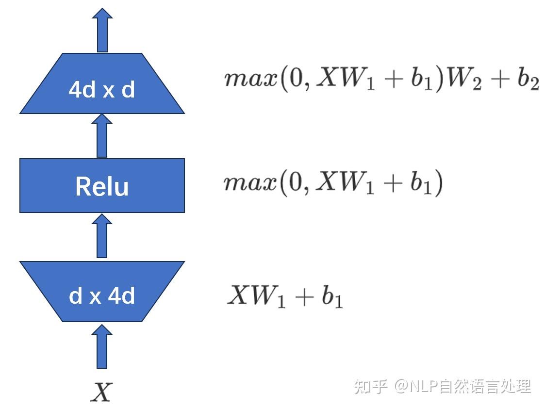 这四个矩阵加起来的参数量*96(96个头)等于57.98B约占总参数量(175B)的33%。 Add& NormAdd 是残差链接(Residual Connection):这里是为了缓解梯度消失/爆炸、信息保真(子层学不到东西时,模型可以退变差化为恒等映射,性能不会)、收敛更快。可以注意的点是,这里的计算过程不仅用了自注意计算的向量,还用了token的原始向量。 Norm 是层归一化(Layer Normalization):稳定激活分布(把每个token按均值0、方差1归一化,防止层与层之间数值飘逸) Feed Forward详细的逻辑图如下: