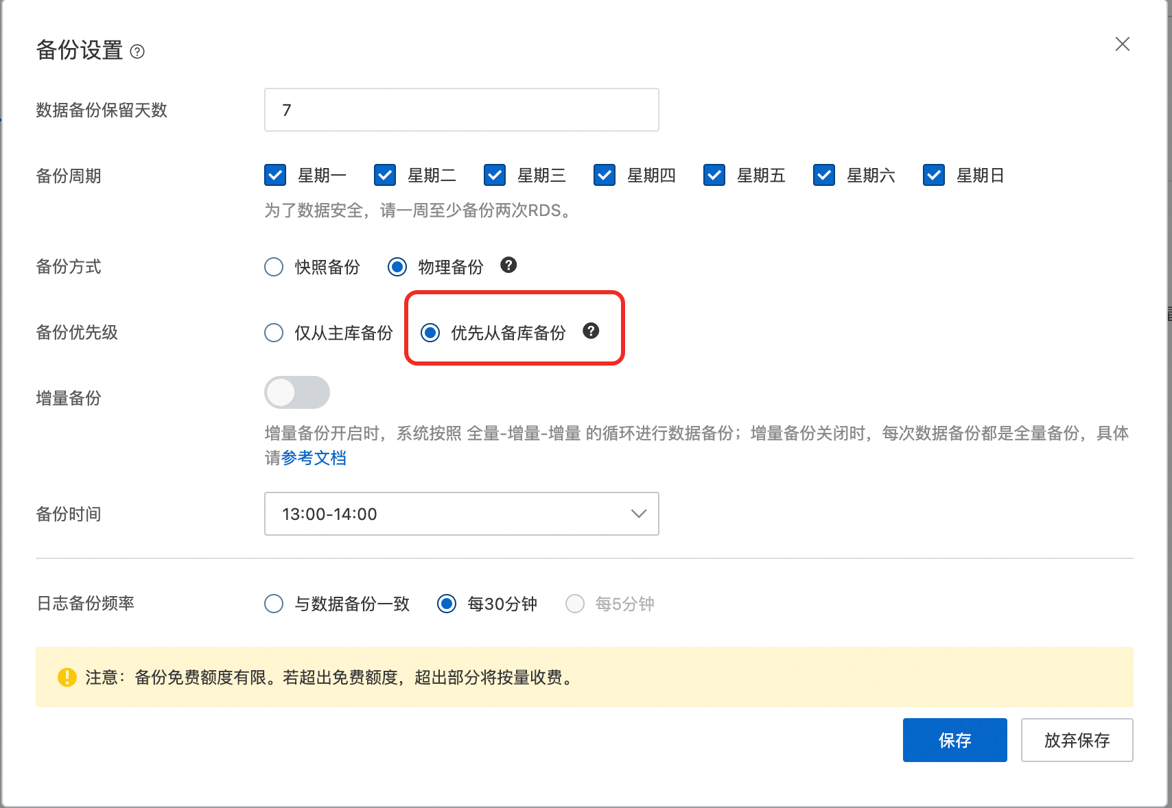 备库备份备份方面,SQL Server 2025 现在支持在任意辅助节点上执行完整和差异备份(此前只能做copy-only备份)。这意味着主库压力可进一步减轻,备库可以定期承担备份任务而不影响主库事务处理 在阿里云RDS for SQL Server的控制台上,对于企业集群版实例,可以做到备库备份,未来我们也会针对SQL Server 2025推出全量备份与差异备份的能力,进一步释放备库的资源。