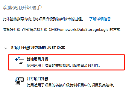 等安装完成后,关闭VS,等待更新完成。 ![]() 当出现以下框时,选择End Tasks ![]() 等待安装完成 ![]() 安装完成,重新打开项目 ![]() 完成后,重新打开项目,选中要升级的项目,鼠标右键,选中升级,选中就地升级项目(升级前最好先将本地的引用截图保存,后面升级后进行比较,将缺少的依赖再引用)