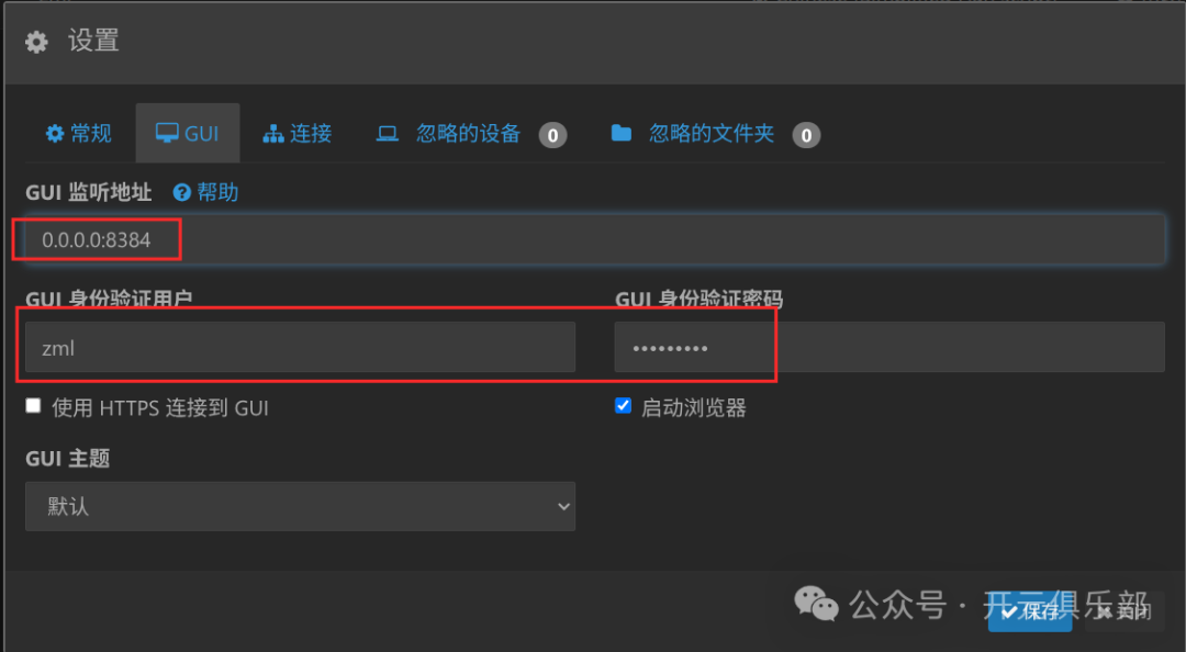 找到 <gui> 标签部分,将 <address>127.0.0.1:8384</address> 修改为 0.0.0.0:8384。