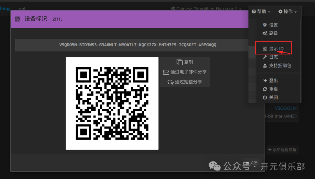 - • 在 服务器 A 的界面上,点击右下角“操作” -> “显示 ID”,复制那一长串 ID。