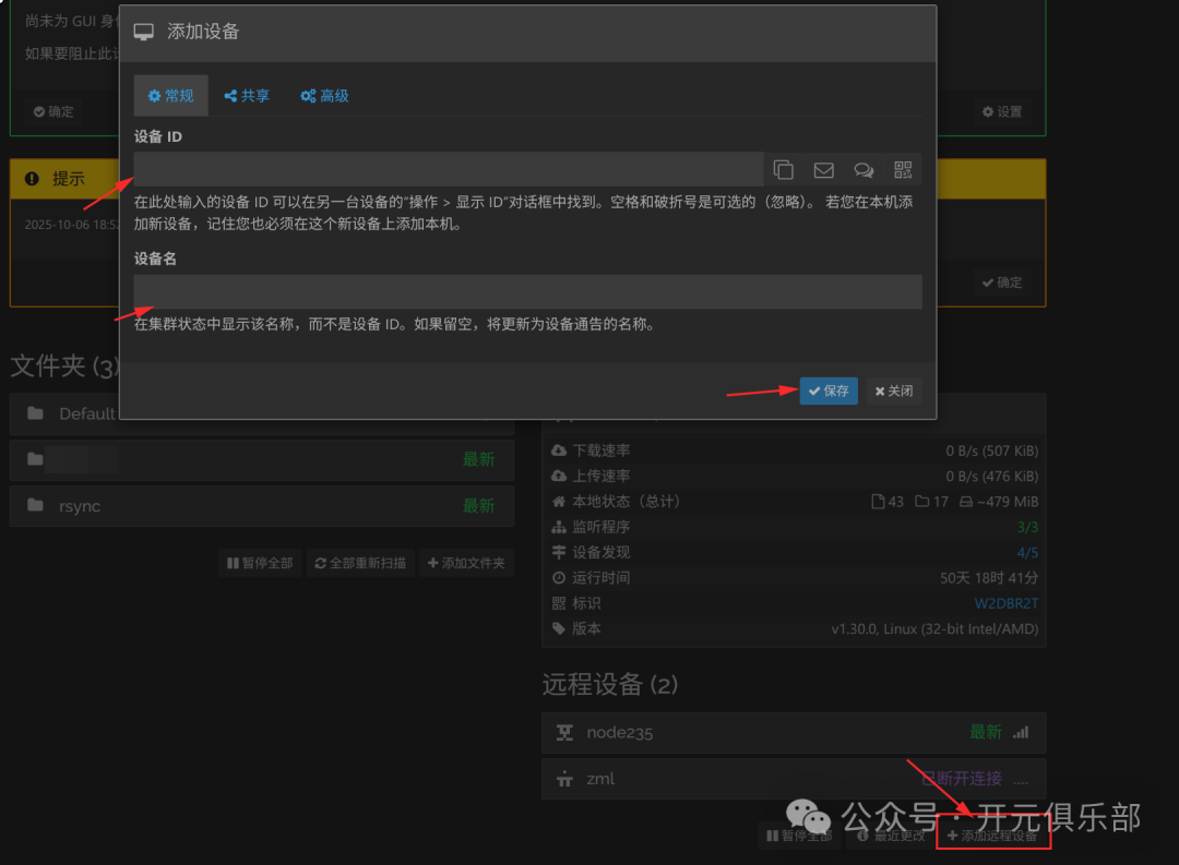 - • 打开 Syncthing Web 界面(