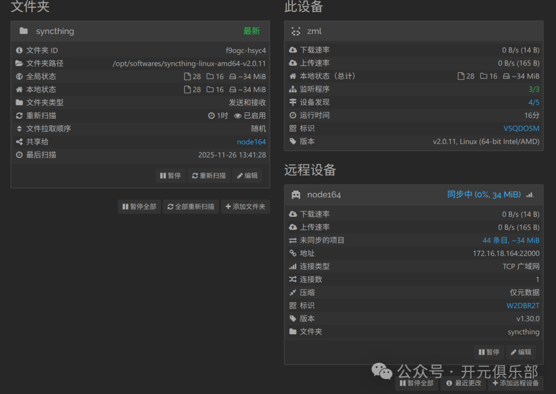 通过以上步骤,你已经成功构建了一个完全私有、不依赖公网、点对点加密的文件同步系统。无论是做数据库异地备份,还是应用代码分发,Syncthing 都是内网运维的得力助手。