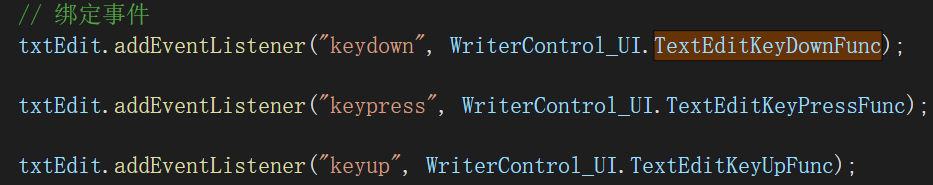 在这个键盘事件处理的JS代码中,我们使用invokeMethod()通过JSInterop调用了在C#端定义的EditorHandleKeyEvent()函数,并将事件参数传递给C#端。