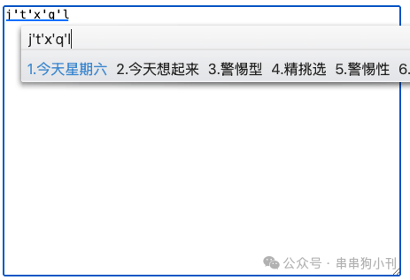 当我们用中文输入法输入时,一回车(按照习惯,应该只会输入 jtxql 这六个字符),会产生这样的效果:
