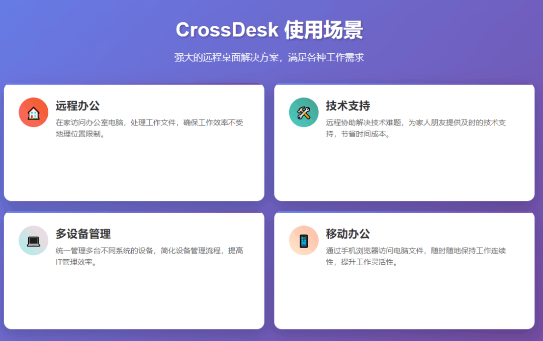 职场办公当中,我们常常会遇到需要远程控制电脑的情况。比如在家访问办公室的电脑,或者帮朋友解决电脑问题。市面上虽然有不少远程桌面软件,但大多臃肿、收费或限制平台。今天给大家推荐一款轻量级且真正跨平台的远程控制软件——CrossDesk。 什么是CrossDesk?