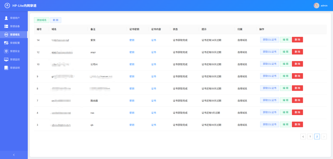 - 域名代理:支持域名代理,方便用户通过域名访问内网服务。