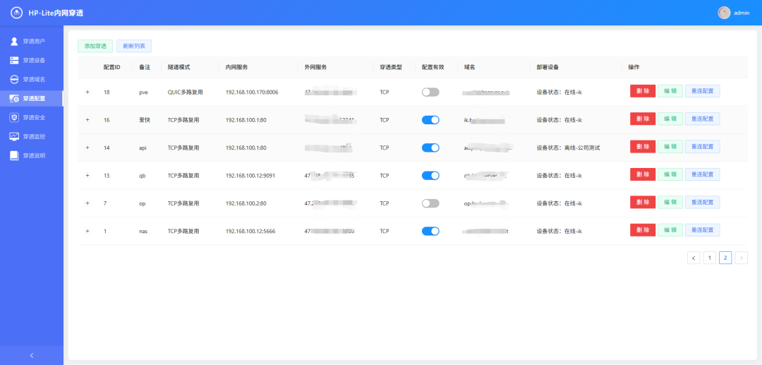 - 映射配置:提供映射配置的启用和禁用功能,便于临时关闭穿透服务。