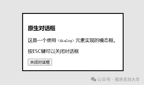 <button onclick="document.getElementById('modal').close()">关闭</button>