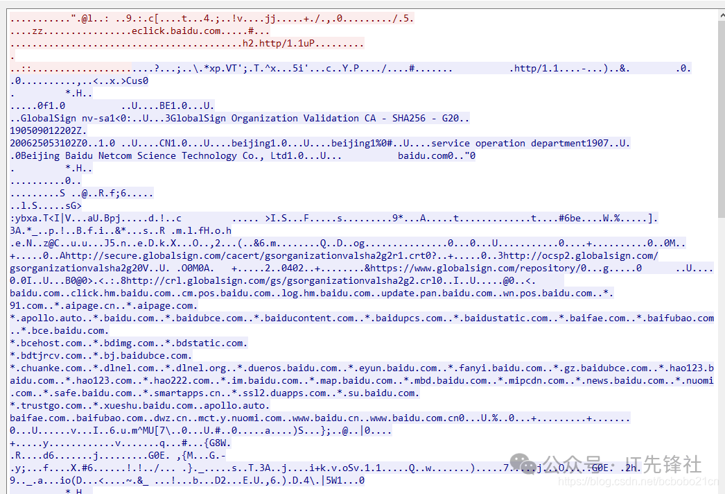 看一下基本是乱码;大体能看出,是http1.1协议;是本机和百度的一个网址通信的情况;