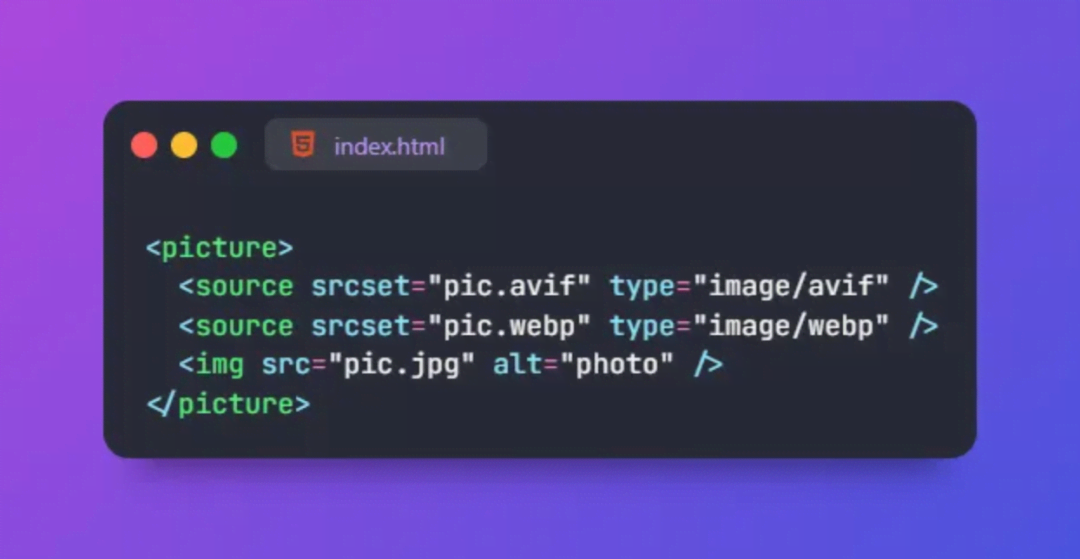 该结构通过 <picture> 元素提供多种图像格式(如 AVIF、WebP),并包含 JPEG 作为回退格式。尽管 WebP 和 AVIF 在压缩率与画质方面具有明显优势,但它们可能并非所有浏览器都支持。因此,添加 JPEG 格式可作为兼容性保障。