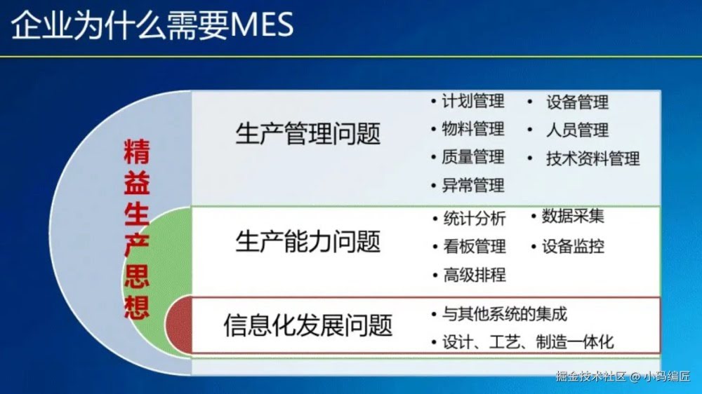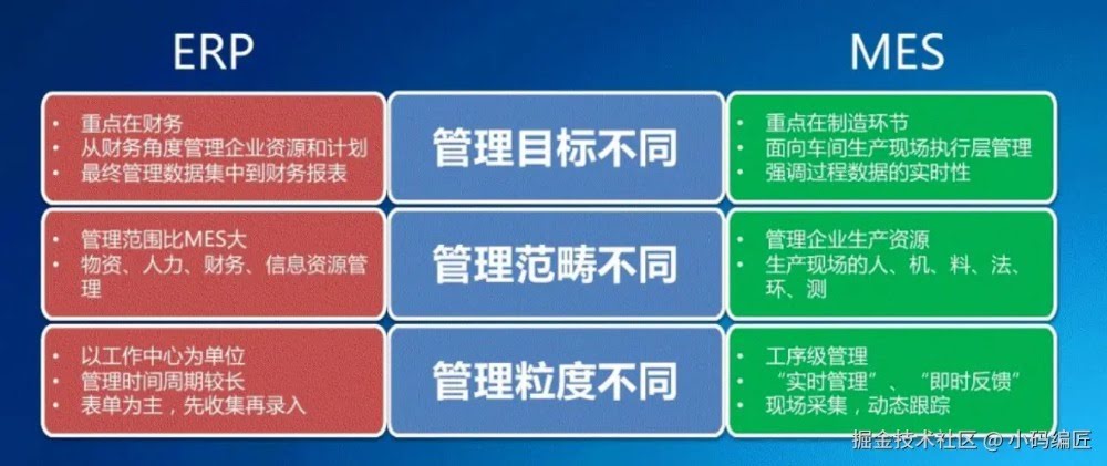 以及 MES(Manufacturing Execution System,制造执行系统)是三种广泛应用于企业的信息系统,它们各自侧重不同的业务领域和功能。 ERP:综合性软件系统,用于整合管理企业内各项业务流程和数据。