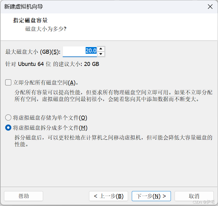勾选「将虚拟磁盘存储为单个文件」(性能更好)或「拆分虚拟磁盘为多个文件」(便于迁移)→ 下一步;