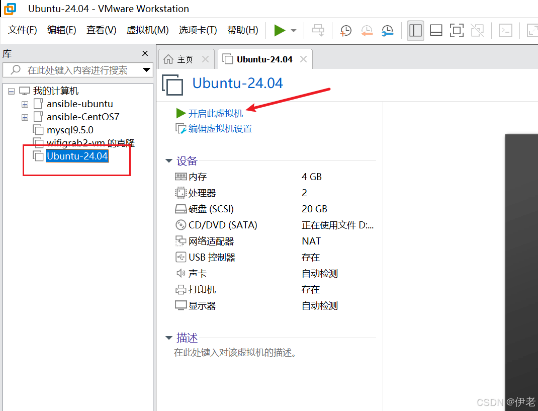 选中虚拟机 → 点击「开启此虚拟机」