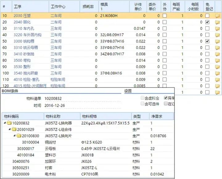 • 物料BOM清单、工程变更、工艺路线、工作日历