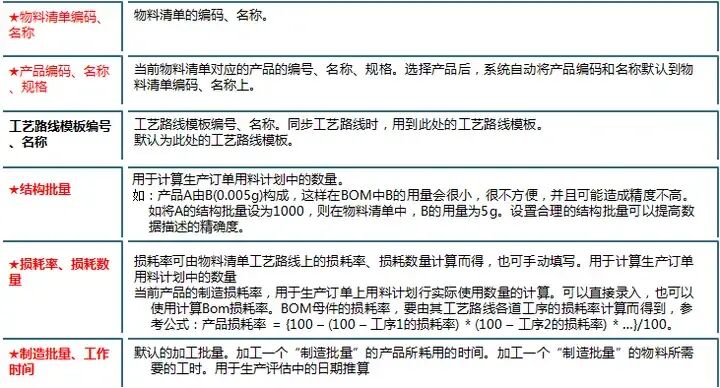 • 标准用量:BOM表上的标准用量可分投入量和产出量。产出量是构成产成品的净用量。