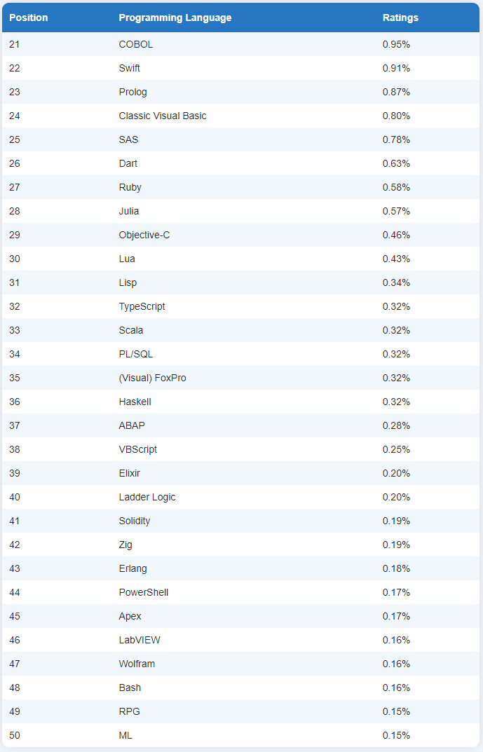 C# 获评 TIOBE 2025 年度编程语言,Python 稳居榜首 网址:https://www.tiobe.com/tiobe-index/ TIOBE 公布的数据显示,C# 凭借 2.94% 的年度最高涨幅,继 2023 年后再次获评“2025 年度编程语言”。目前 C# 位列榜单第 5 位。在最新排名中,Python 以 22.61% 的份额稳居第一。C 语言超越 C++ 升至第 2 位,Java 与 C++ 分列第 3、4 位。此外,R 语言重返前 10,Perl 升至第 11 位;Go 语言跌出前 10 位列第 16,Ruby 则跌至第 27 位。该指数主要通过全球工程师数量、课程及主流搜索引擎数据衡量编程语言普及度。 该文章在 2026/1/10 13:04:19 编辑过 |