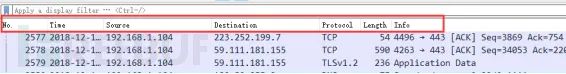 ip.addr == 211.162.2.183 获取待分析数据包列表。