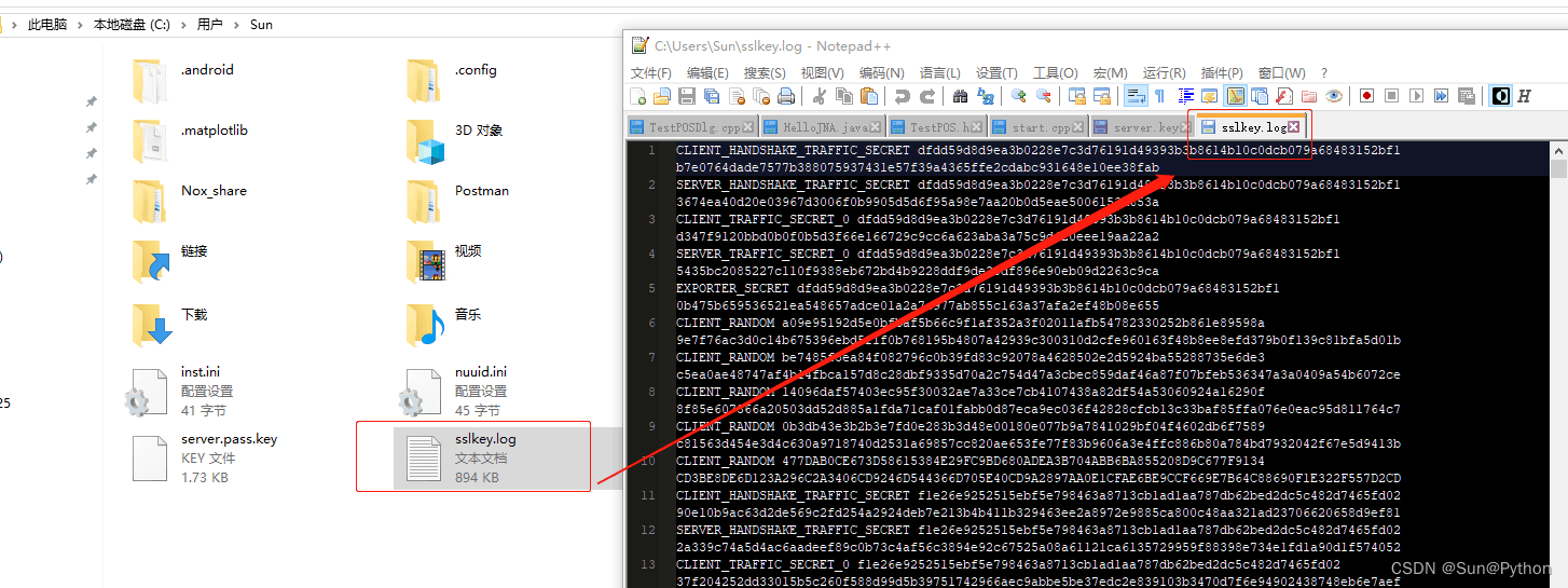 注意:不使用时,务必删除配置的路径,因为 C:\Users\Sun\sslkey.log 文件会不断增大,影响其他程序的运行。