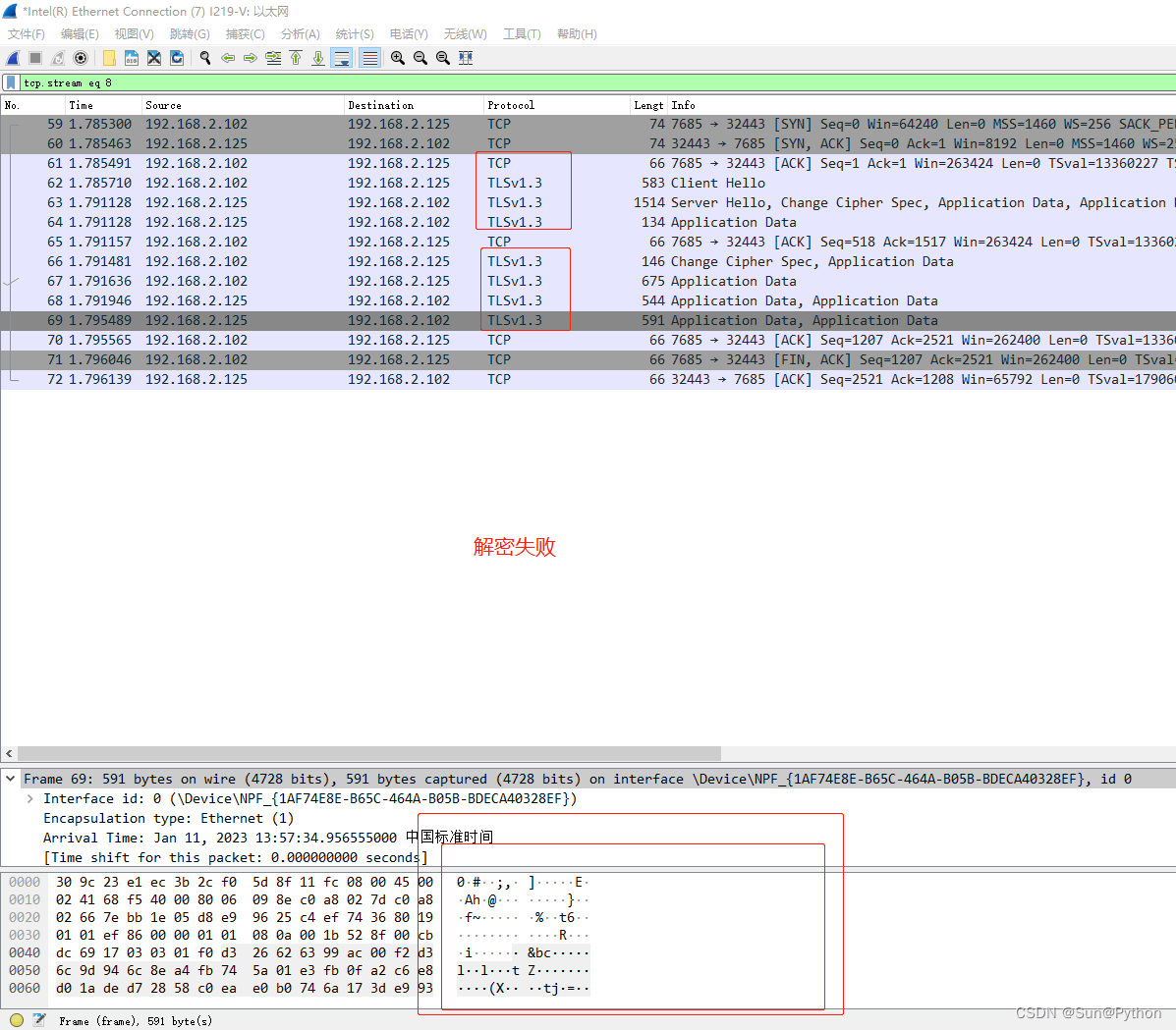 检查文件 D:\Program\WiresharkPortable64\sslkey.log 中是否已存储 TLS 密钥信息。