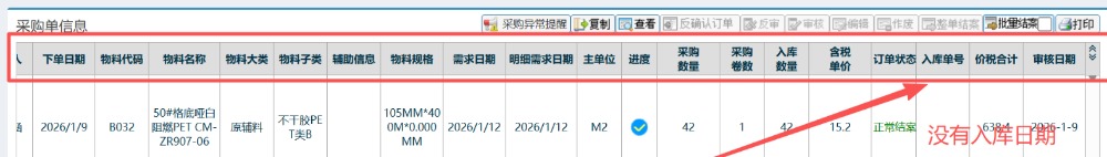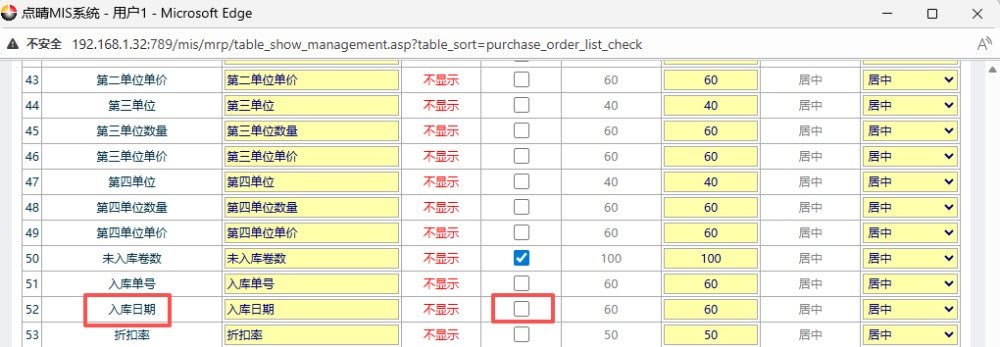 [点晴模切ERP]采购单明细管理的入库日期怎么没有显示或者隐藏了?如何解决?