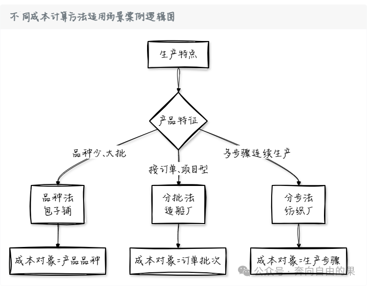 接下来我们进入第二步,要确定我们算谁的成本,要找到成本的对象,像这种数据已经准备好了,接下来就是要明确我们这个是要给谁算的,也就是成本的对象,我们可以根据企业生产特点的一些不同,算账的目标其实也是不同的。