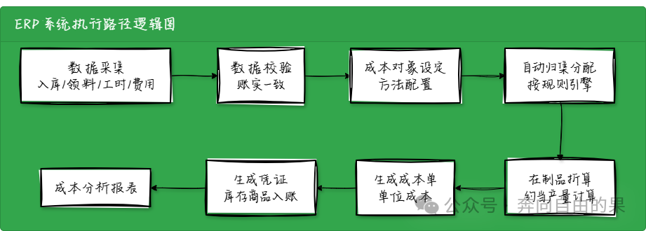 上面这些过程在ERP的系统里面,通常体现为一系列的确认和核算的步骤,像确认成本项目,核对数据,确认核算层级等等。 比如说我们先算一车间的,再算二车间的,然后在系统会自动的或辅助完成对应的核算。