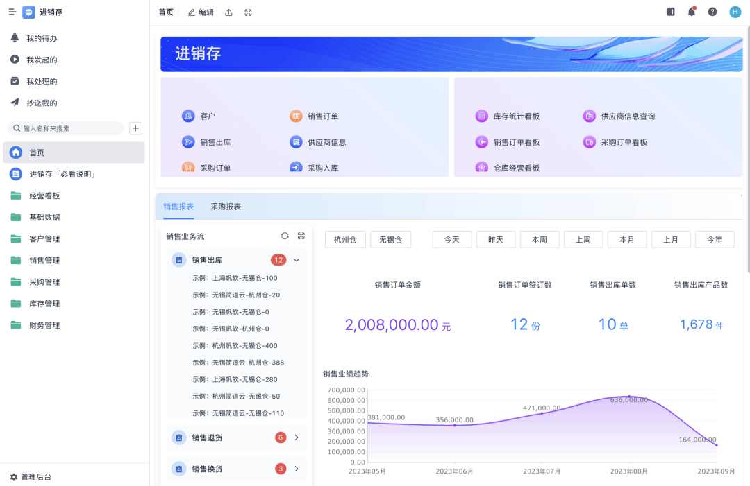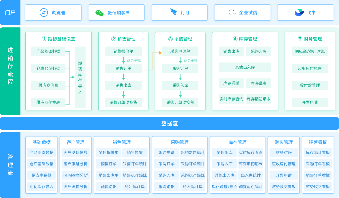 很多企业以为分开运行更灵活,但实际上,每多一套系统,就增加了 数据传递、导入、校验的人工成本。 账、货、单不一致,并不是系统不好,而是 流程割裂、动作不闭环。 当然,也有一些企业慢慢摸索出自己的做法。 比如我们接触的客户,他们让进销存系统各个环节都尽量贴合实际业务动作——采购、销售、库存、财务,数据自然流转。 尤其是在销售管理、采购管理和财务管理上,每笔动作都被认真记录,月底盘点对得上账的时候,整个团队都觉得轻松不少。 可以说,这类企业在操作上就比大部分公司稳得多了。 流程割裂:采购、销售、财务各干各的, 数据乱成一锅粥 所谓账对不上,背后往往是 流程没打通: