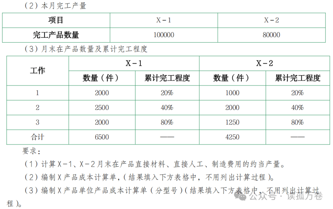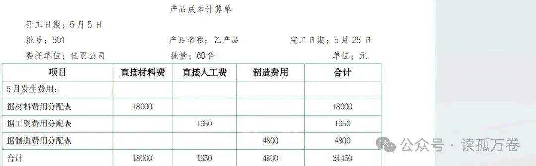 情况:5月投产60件,当月完工40件并交货,20件未完工(即“批次内产品跨月陆续完工”)。
