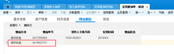设置每次获取单据的时间范围(最多只能设置30天);如果设置7天,则系统根据业务单据的日期判断7天内的业务单据则更新物流信息。4.c 出库单保存回填上游通知单、订单物流单号和公司