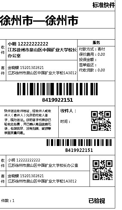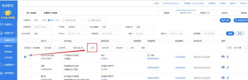 - 申请电子面单,然后得到电子面单链接,在浏览器中打开链接右键可实现打印,但无法批量打印。2021-3-25补丁支持按模板批量打印,具体使用操作参考文章最后的新增功能介绍。