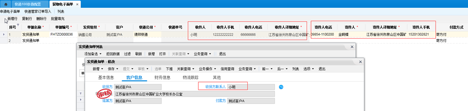 快递公司电子面单参数配置 |