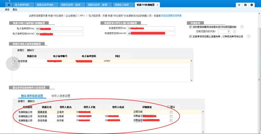 快递管家参数配置 |