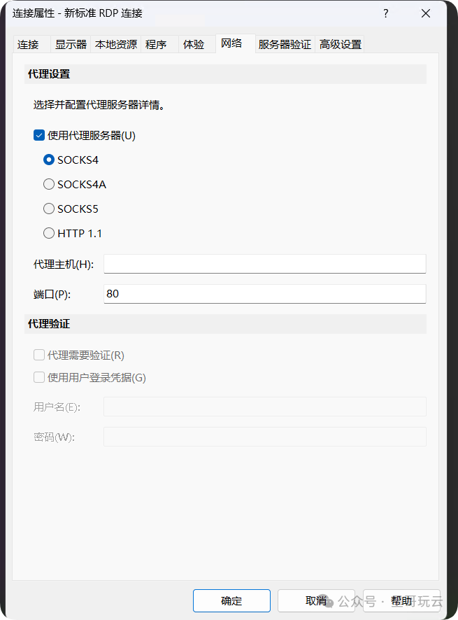 这两个协议基本覆盖了大多数代理场景。 ![]() 4. 填写代理信息包括: