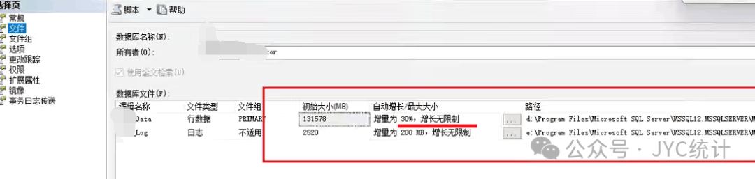 有用到SQL Server数据库的生产系统,请务必检查您的数据库文件和日志文件自增是按百分比还是按MB,如果是按百分比,请务必立即修改为按MB方式增长。很多用户默认建完数据库就没有做过任何调整,等到数据库变得越来越大的时候,故障就开始出现了。单个文件130G,当然不算大(见过单文件1TB以上的),增量30%,意味着文件写满后,需要一次性扩展130*30%=39G,如果磁盘的IO速度是100MB/s,那么意味着数据库将至少卡顿400秒(6.7分钟),如果加上蝴蝶效应,至少卡顿10分钟以上,对于一个关键的业务系统,卡顿这么久是不可忍受的。切记文件增长的速度务必能在几秒内完成,越快越好。所以如果你是DBA,那么首先需要调整的就是这个文件的增长方式。另外一个很重要的优化是:根据CPU的个数来决定增加多个数据文件和日志文件,而不是默认的1个,从而充分提高数据库的并行性能和备份速度安全。如下是SQLSERVER 2022版本的界面:建库默认已经按MB方式修改了,说明微软也意识到了这个基本的优化问题。
