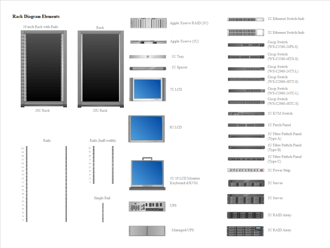 上图展示了典型的机架图示和U单位标注,大家可以看到1U、2U设备的安装位置和高度占比。