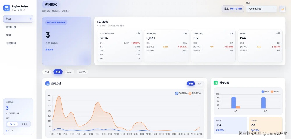 今天,给大家推荐一款开源的轻量级 Nginx 日志分析可视化面板,告别逐行翻日志! 项目介绍