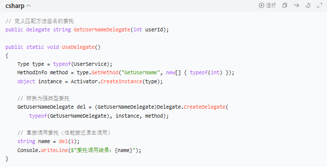 2. 使用 Delegate.CreateDelegate(比 Invoke 快 5~10 倍)