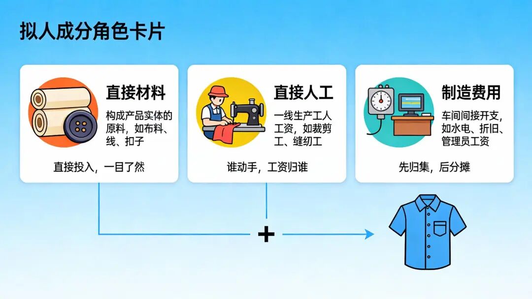 工厂里机器轰鸣、工人忙碌,会计通常都在做什么? 首先绝对不是你想的那样(在数零件),而是时时刻刻在扣成本。 立志要把每一分钱,花在哪儿,都清清楚楚得记下来。 那么,今天带你走进生产成本的核心:料、工、费,看懂产品是怎么“算”出来的。 一、产品成本由哪三部分构成?![]() 任何产品在生产过程中,成本都可归为三类: