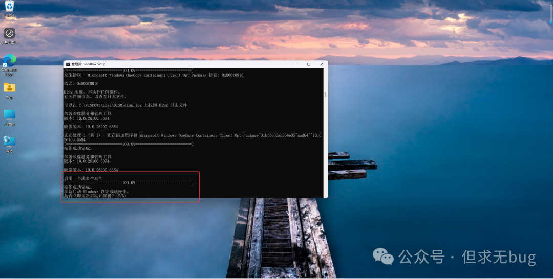 echo 使用管理员权限成功启动批处理echo .clsTitle Sandbox Setup
