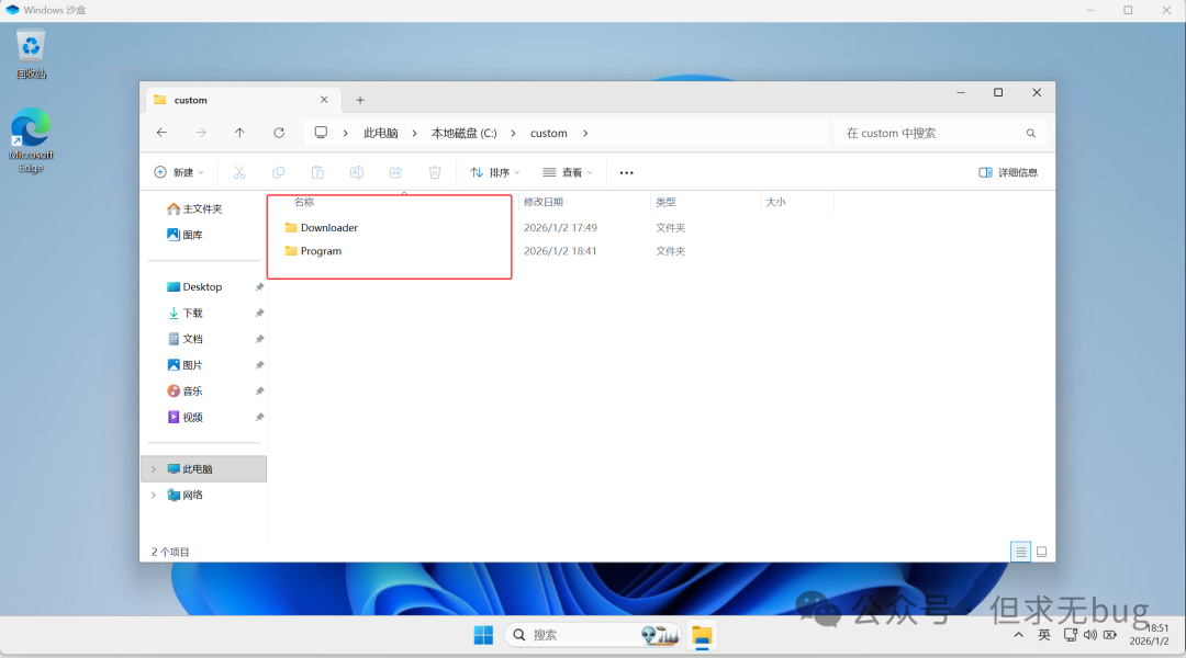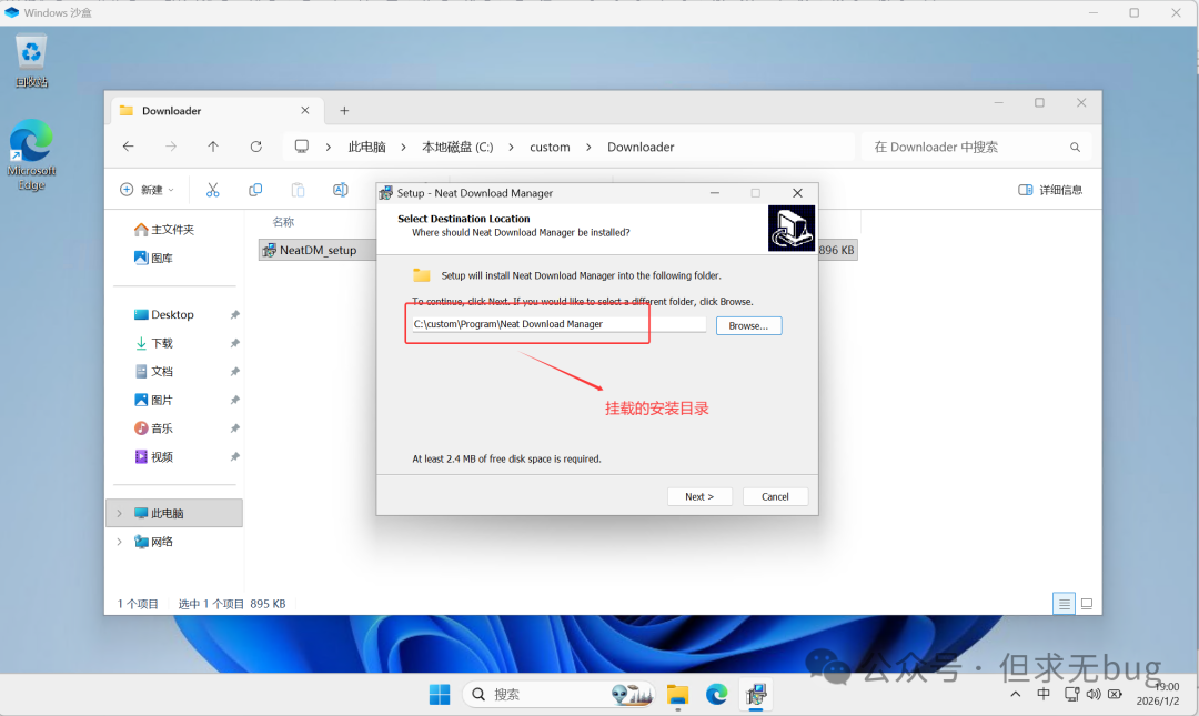 按 Ctrl + S 保存后双击 sandbox.wsb 打开 Windows 沙盒,此时会在 Downloader 目录下发现拷贝的 NDM安装程序: