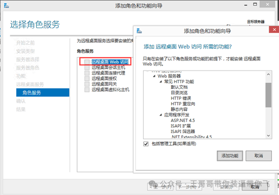 先在远程桌面web访问服务器上安装远程桌面web访问与web服务器IIS: